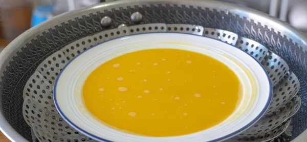 4、拌匀后倒入盘子里,撇去浮沫,放入锅中,中火蒸8分钟左右。