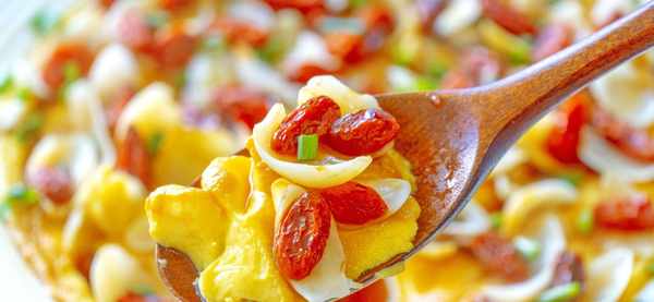 食材:干百合、2个鸡蛋、枸杞、葱花、酱油、盐、油