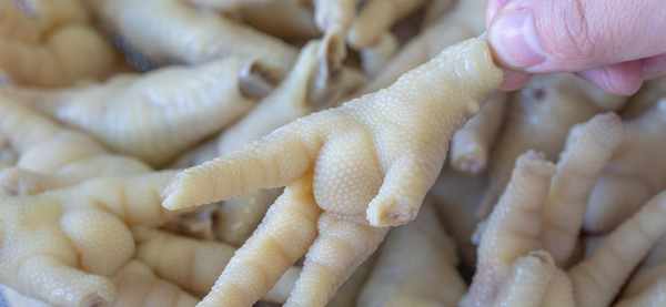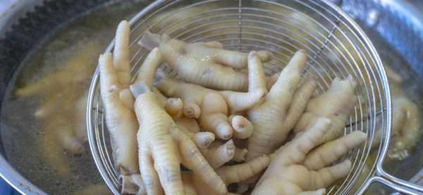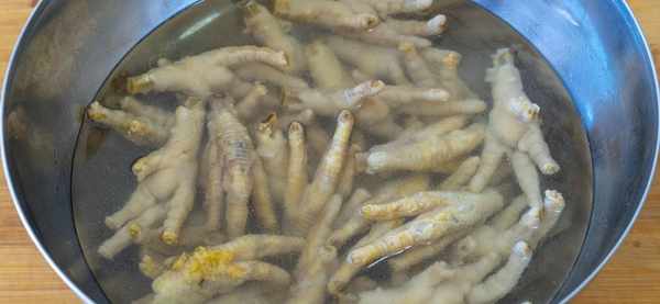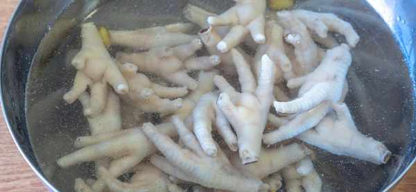 1、下面来处理鸡爪,洗干净先把鸡爪的指甲都剪掉。