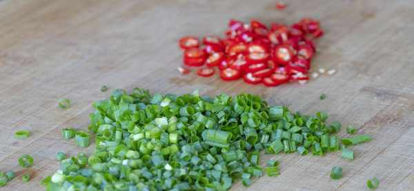 3、小葱一把,切成葱花。小米辣3个,切成圈圈。