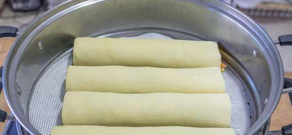 8、搓好后放入盘子上蒸锅,大火10分钟。