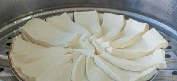 2、起锅烧水,水开上汽后放入豆腐大火蒸5分钟,蒸好后倒掉豆腐里面多余的水。