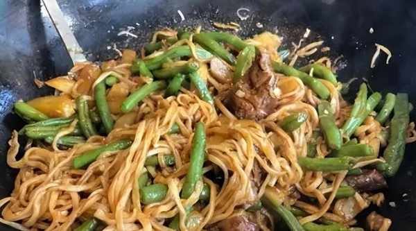面条、豆角、五花肉、大蒜、生抽、老抽、料酒、盐、油