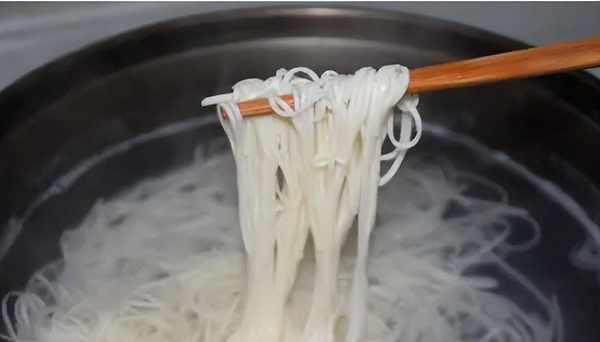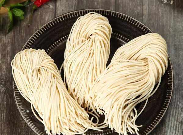 3、锅中烧水,水开后放入面条,煮至面条8时尚左右捞出过凉水,煮至8时尚可以使做出的炒面更加劲道。