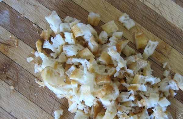 油条一根,用刀切碎了,碎一点包馅的时候比较好包。