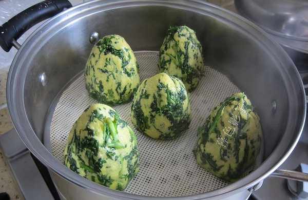 冷水下锅蒸的菜团子,需要立刻盖好锅盖。