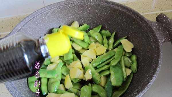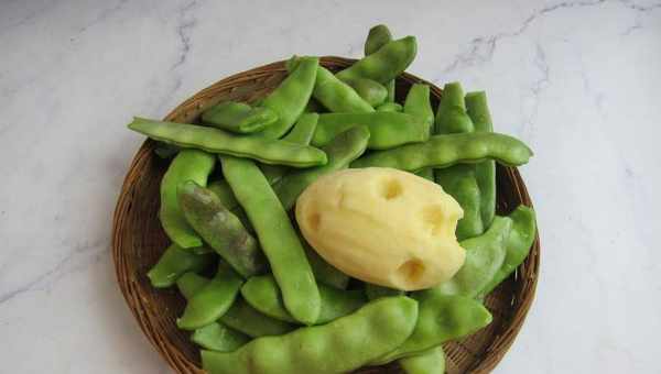 油豆角洗干净,土豆需要削皮备用。