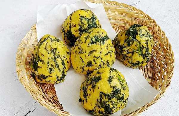 1,购买新鲜的玉米面,做出来的菜团子鲜香。