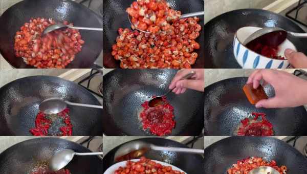 再起锅烧油,然后把泡好的干辣椒和麻椒下锅里面煸炒一下,然后再往里面加一勺豆瓣酱,再加一块火锅底料小火慢炒,完全炒出红油之后再加点葱姜炒香,然后再放入虾尾,烹入料酒,海鲜酱油,半勺蚝油,把全部的料炒出融合的气质之后,这时再加上一杯啤酒,不需要加太多啤酒太多,会带一些苦味。