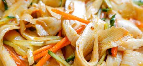削薄的杏鲍菇裹满了鲜亮诱人的料汁,