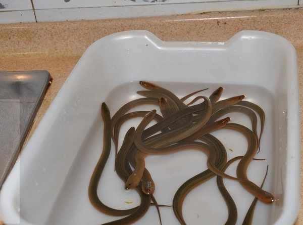 1、黄鳝不要选太过粗大的,下酒菜一般选的是稍微细小一点的。买回家后用开水烫伤,这样还能去掉它身上的黏液。葱姜蒜和干辣椒切碎备用。