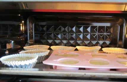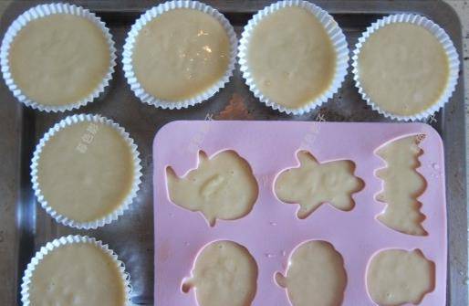 把蛋糕糊倒入模具中,这次做2种形状的蛋糕。