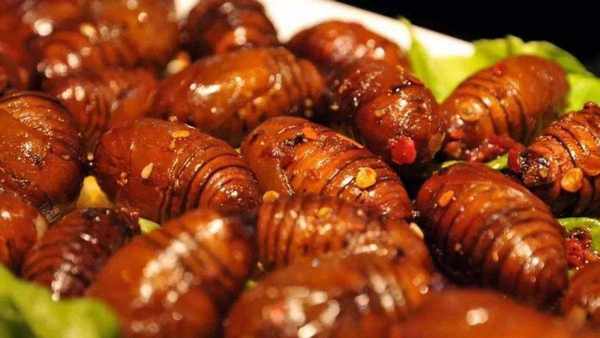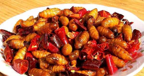 刚看见蚕蛹的时候可能会觉得很雷人,恶心,没办法吃进嘴里,但是我们可以闭上眼睛,仔细尝尝这道河南怪菜,说不定你会爱上这道美味哦。