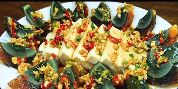 变蛋的吃法很简单,剥开皮就能吃,也可以切成小块,放上调味料凉拌着吃,变蛋气质鲜美可口,闻起来有一股特殊的香味,大家想尝尝吗?