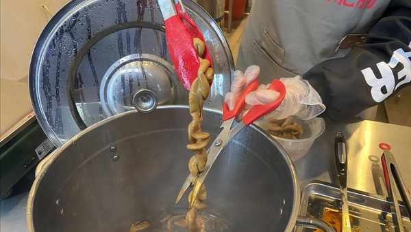 店里的肥肠是老板每天到固定的供应商处,挑选购买回来的,非常新鲜,而买回来的肥肠,老板会和员工一起,用手慢慢的清洗8-10遍,并将里面所有的油脂,用小刀细细的刮干净,正因为他家的肥肠与所宣言的一样,清洗的比脸都干净,所以本地许多开着宝马、奔驰的老板,才会愿意在店前排队等候抢着吃,一次性购买几百元的肥肠带回家与家人共享。