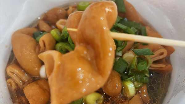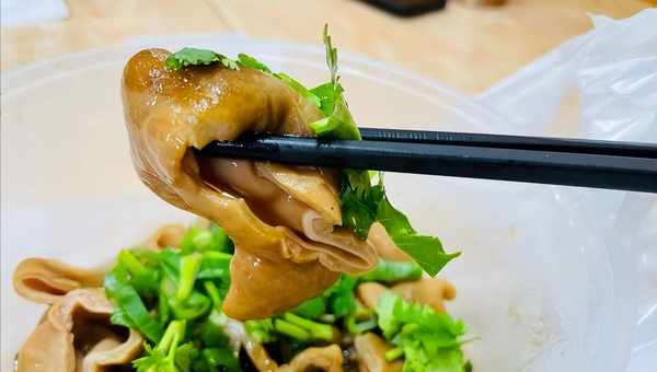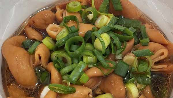 除了肥肠外,店里的豆腐泡,口感也非常不错,豆腐泡虽然是老板到市场上进购回来的成品,但品质较好,放入辣肥肠的卤汁中,卤煮一段时间后,麻辣十足,汁水浓郁,轻轻的一咬就会爆汁,细细的咀嚼下,回口还带有一股淡淡的黄豆清香,偶尔可以换换口味,买一份尝尝鲜。