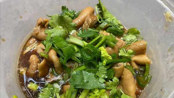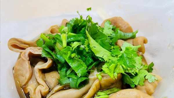 他家的肥肠分为辣的和不辣的两种,不辣的肥肠是用盐、蒜、酱油、姜、丁香、八角、草果、茴香等调料卤制的,吃起来咸香可口,软糯劲道,有一股浓浓的酱香味,辣肥肠的卤料与不辣的差不多,只是多了一种干辣椒,这样卤出来的肥肠,香辣弹牙,不油不腻,也极其可口;两种口味的肥肠,虽口感各有千秋,但都没有一丝异味,无论是下酒,还是拌饭,都非常不错。