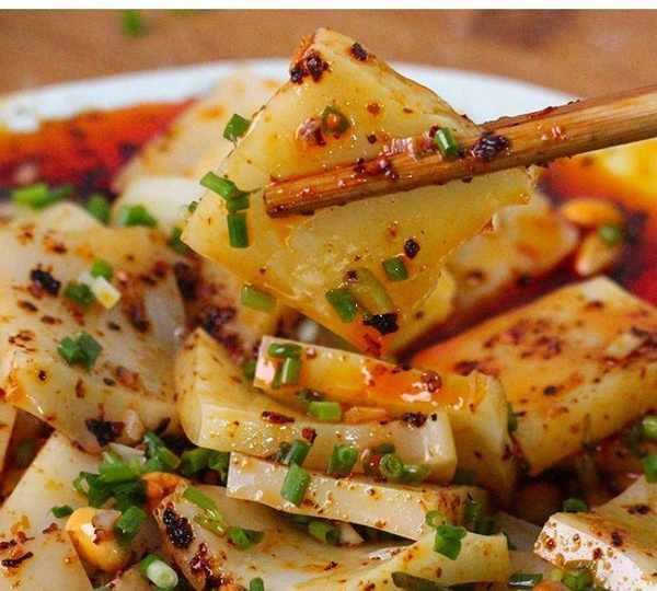 5. 冷却好后切成长条或方块,加入调料,搅匀即可