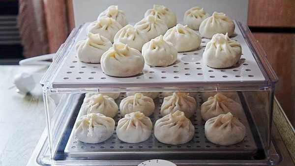 时间到,打开电蒸箱,包子就蒸好了,皮薄馅大,老人孩子都爱吃。