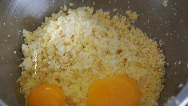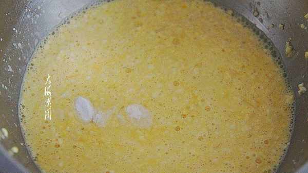食材:美玉米2只;鸡蛋2个;油适量;小苏打1g。