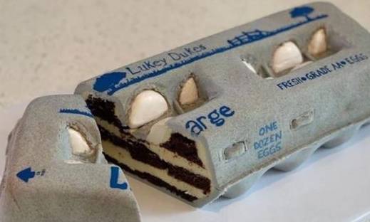 第3个,这个东西看起来特别像是我们在超市里面见到的那种装鸡蛋的盒子,外面的颜色看上去就像是泡沫纸板一样,而且还能够看到里面夹杂着几个石头,其实这并不是装鸡蛋的盒子,而是一种蛋糕,真的是太厉害了,佩服蛋糕师的想象力和动手能力。