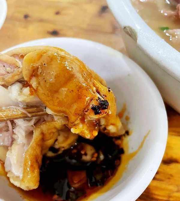 他家的蹄花炖得是溜趴,几乎可以入口即化,拌上他家的秘密油辣子,那滋味直爽歪歪,再喝上一碗浓稠的蹄花汤更是锦上添花。