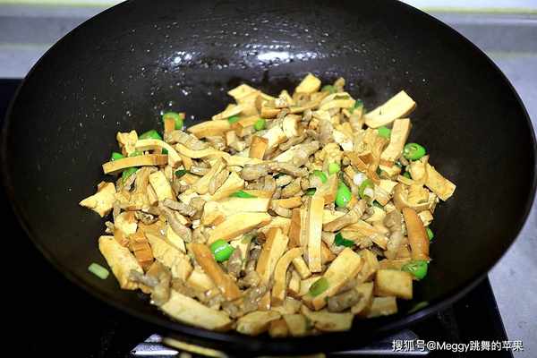1. 肉丝没放淀粉上浆,直接入锅,略变色就倒酱油上色入味,再迅速倒入豆腐干、杭椒圈,可保持肉丝香嫩不老;