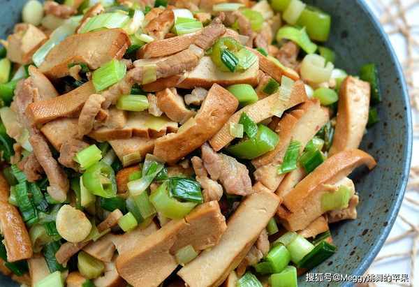 软嫩香弹的豆腐干富含优质蛋白质和钙,荤炒素吃都很美味,放辣椒和青蒜同炒,十分开胃,再放几刀肉丝,味道更浓郁,营养更丰富,是一道不能错过的快手下饭菜。