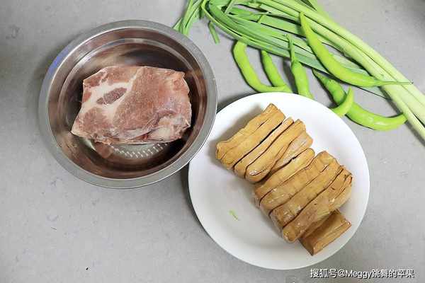 【主料】 猪瘦肉1块,豆腐干1盘,青蒜3棵,杭椒5根