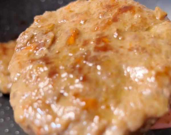 6、煎好之后就可以开吃了。非常简单的牛肉胡萝卜饼,做法并不复杂,大家可以这样给孩子做一点,每天早上煎一块,一天的能量都有了。