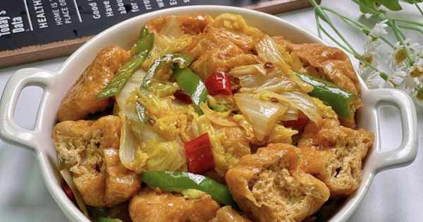2、热油放蒜末干辣椒炒香,放娃娃菜炒软,放入豆泡加适量清水焖10分钟,加半勺盐+半勺蚝油+一勺生抽+青辣椒丝翻炒均匀即可出锅啦