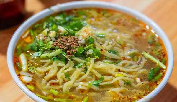 郧县酸浆面是湖北十堰郧县的一道地方风味面食,这道面食在夏天和春季特别受食客们的欢迎,因为酸浆面吃到嘴里酸香味扑鼻,不凉也不烫,很爽口,吃着酸、香、辣,可以刺激我们的食欲,促进消化,健脾胃。
