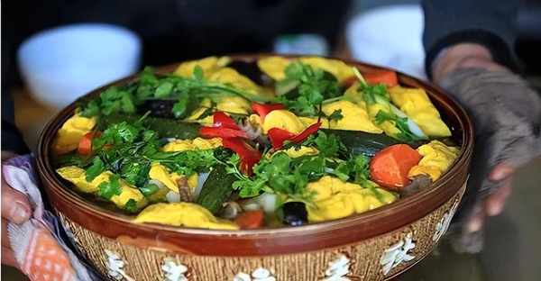 竹溪蒸盆是湖北十堰竹溪县民间的一道传统美食,这道菜把土鸡肉、蛋饺、香菇、土豆、猪蹄等食材汇聚于一锅,看着红绿相映,闻着香气逼人,吃着肉质细美、鲜美,营养全面。