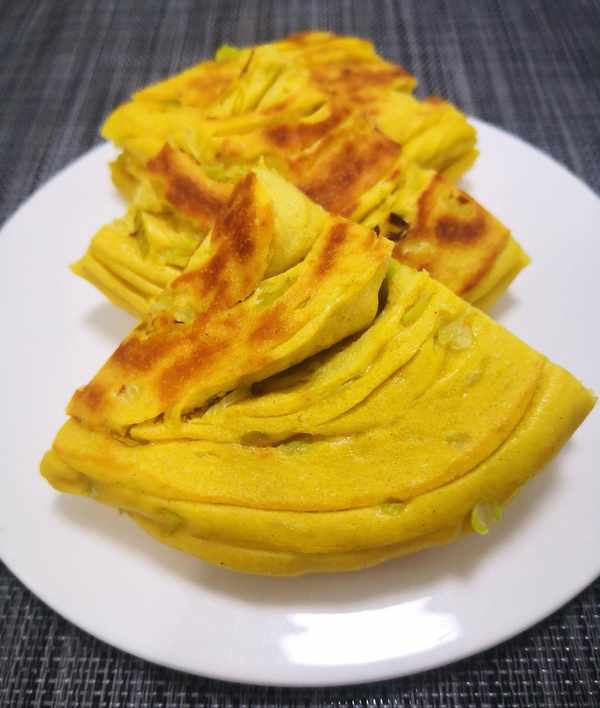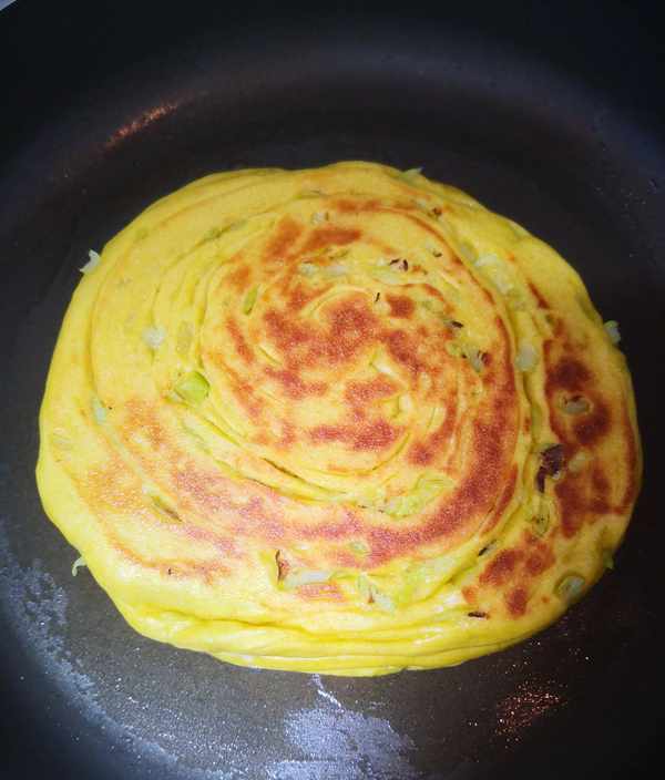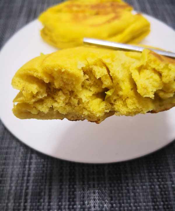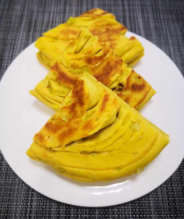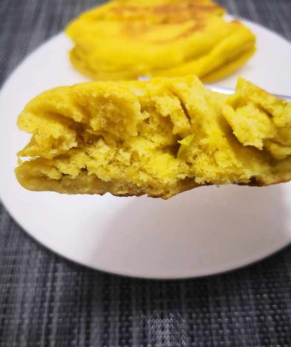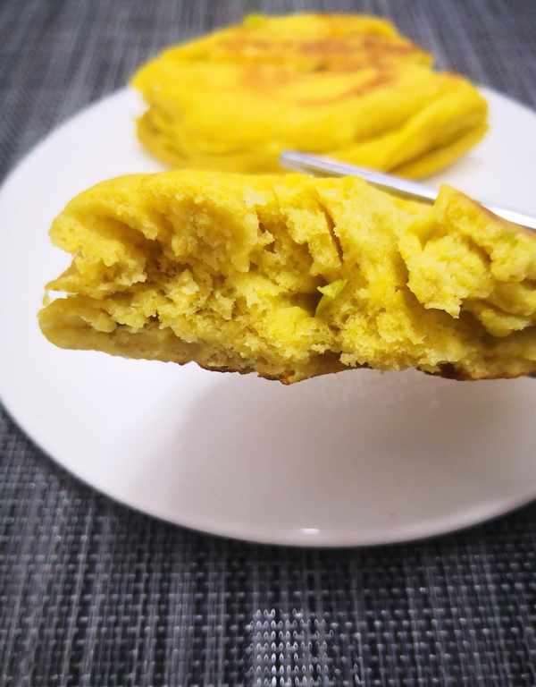3.这个饼胚可烙可蒸,烙的口感是外焦里软,蒸的话更加松软又健康。