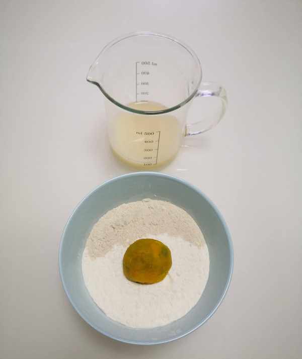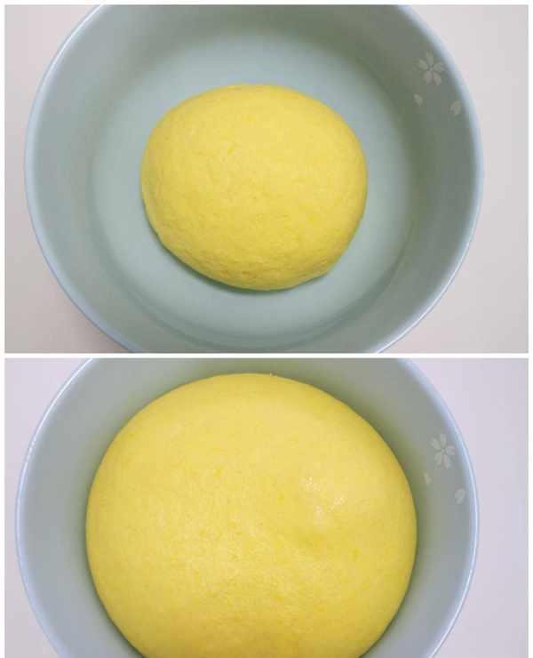 面团:南瓜泥、荞麦面粉、中筋小麦面粉、酵母、温水。