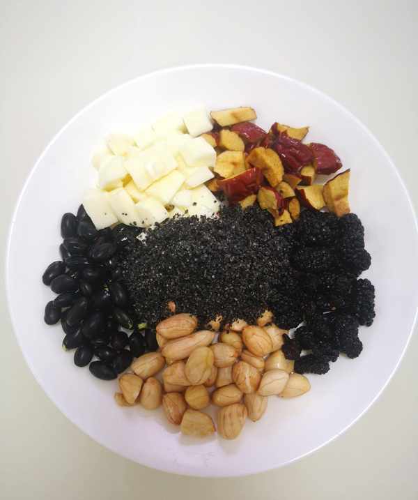 黑豆、黑芝麻、桑葚干、红枣、山药、花生