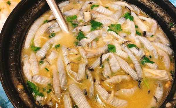 所谓“蛇”尖上的美食一定要用新鲜的水蛇,将水蛇洗净切段放入粥中熬制,蛇肉蛇皮蛇胆蛇汤混在粥中,弥漫着浓浓的香气,肉质紧致,营养又丰富,怪不得广州人爱喝。但是这道菜对于外地人来说,要吃一口恐怕都会吓破胆,再好也免谈!