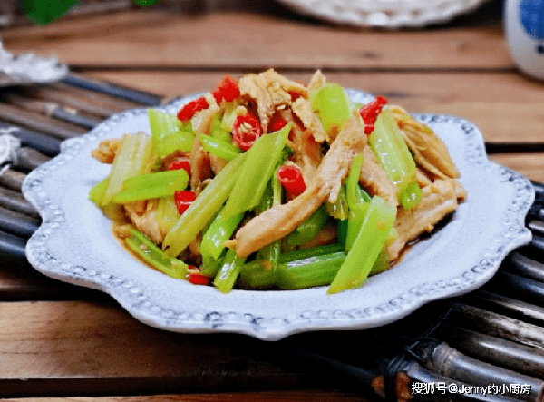 接着倒入芹菜翻炒均匀,再加入盐、生抽翻炒片刻,就可以出锅了。