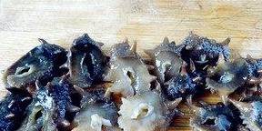 干海参放入纯净水里泡10-15小时(放到冰箱恒温里、期中换水3次、回软后放入凉水锅里慢慢加热、不能开锅煮1个小时左右)。