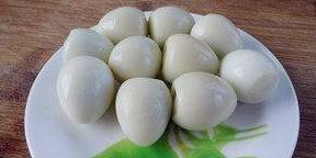 鹌鹑蛋蒸熟或煮熟后剥皮备用。