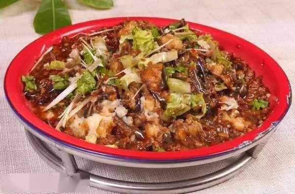 这道菜的最大亮点,是在传统菜“肉末烧茄子”中加入了土豆泥,走菜时把炒好的茄子盖在提前蒸好的土豆泥上,上桌后,服务员将茄子与土豆泥搅拌在一起食用。如此一来,土豆泥吸入了烧茄子的酱香,茄子里融入了土豆泥的绵软,口感丰富,十分下饭。