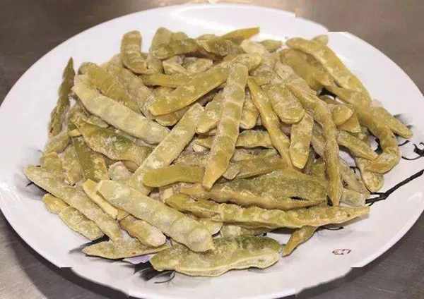 又名“勾勾黄”,是黑龙江五常市拉林镇的一种特产芸豆。其颜色金黄,籽大个短,烹制时熟得快、口感面,豆香味浓郁。这款芸豆一般在旺季大量购入,汆水后加工成速冻货品,供其他几个季节使用。
