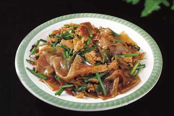 这道菜选用绿豆粉皮,炒后不发粘、吃时不抱团,爽脆劲道,底味浓厚,略带汤汁,被称为“素裙边”。