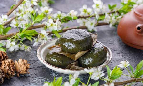 传统青团以艾草为汁,和细粉作团,包豆沙为馅,色如碧玉,清香怡人,现在的青团口味更加多样,蛋黄馅、肉松馅、水果馅,还有乳酪芝士馅的青团,都深受年轻人的喜爱。