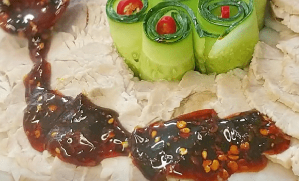 如果说这个饭店里面他用一些冷冻鸡来做这个白斩鸡,做出来的这个形状和这个气味、颜色,它都和新鲜的鸡不太一样,非常明显就可以吃出来,因为白斩鸡本身吃的就是鸡肉本身的这个鲜味,稍微搭配一点酱汁就可以。