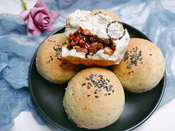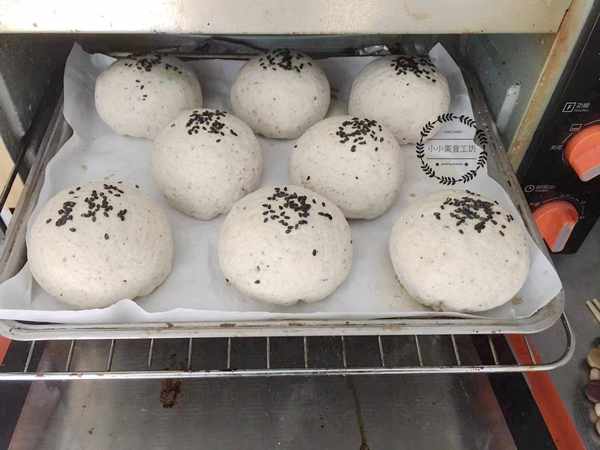 4、最后在餐包上刷成汤水,撒上黑芝麻,放入烤箱180度上下火烤制30分钟即可。