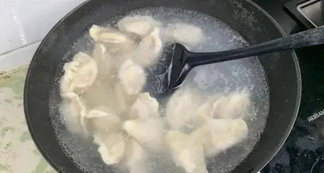 5、用铲子搅拌一下,勿使饺子下沉以防粘锅。如果在锅里放少许冷水,可以使饺子里的水开得快一些,而且也不会因为水沸腾而把饺子煮熟。煮冻饺子时,切勿直接沸水下锅,那温度升得太快了,饺子很容易破。热水入锅使饺子缓缓加热,也不会熬太久,饺子才不破皮,不粘。
