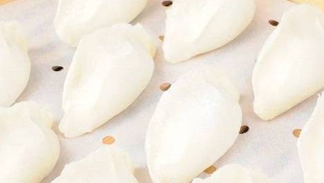 3.鸡蛋扎于小碗中,取出蛋黄部分,包饺子时,在饺子皮封口的沿半圆边醮上蛋清,捏皱饺子皮即成(蛋清粘饺子不易煮破)。