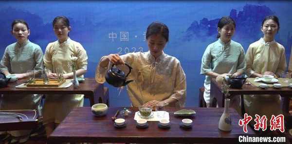 活动现场,来自“双世遗”名山的四市名茶集体亮相,沏茶、品茶,非遗传人和茶商们现场展示茶文化,论道茶产业,吸引包括泰国、巴基斯坦、乌兹别克斯坦、斯里兰卡等国家的10余位留学生驻足品鉴,期间,来自乌兹别克斯坦的留学生林程还为与会嘉宾念起了中国“茶经”。