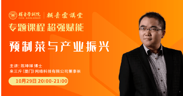 各位辅音云讲堂的朋友们,大家晚上好。我是来三斤董事长陈坤祥博士,今天很高兴和大家分享主题《预制菜与产业振兴》。